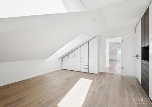Das Schlafzimmer ist bereits vollständig mit hochwertigen, maßgefertigten Einbauschränken ausgestattet und lässt sich dennoch optimal möblieren. Das stilvolle Badezimmer verfügt über eine separate Dusche sowie moderne, hochwertige Armaturen.
