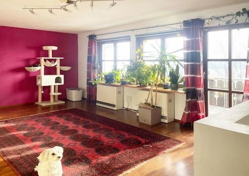 Bei diesem idyllisch gelegenen Zweifamilienhaus, dass über eine traumhafte Aussicht verfügt, wurden beide Wohnungen zu einer Einheit verbunden und bieten viel Raum für die ganze Familie. Mit geringem Aufwand lassen sich die Etagen wieder trennen, sodass zwei separate Wohnungen entstehen.