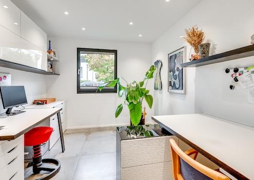 Schon beim Betreten dieses Hauses wird klar: Es ist keine gewöhnliche Immobilie, sondern ein hochwertig umgebautes, modernes Zuhause. Es wurde 2005 erbaut und vor ca. zwei Jahren umfassend saniert, sodass der Grundriss neu gestaltet wurde und ein elegantes Stadthaus mit hohem Wohnkomfort entstanden ist. Die ideale Südost-Ausrichtung öffnet das Haus zur grünen Weite des Biotops und sorgt für viel Privatsphäre. Großzügige Fensterflächen durchfluten die Räume mit warmem Tageslicht. Im Erdgeschoss beeindruckt die offene Designerküche, die mit hochwertigen Materialien und moderner Ausstattung perfekt zum großzügigen Wohnbereich passt. Der elegante Kamin im Wohnbereich lädt zu entspannten Stunden an kühlen Abenden ein. Durch die weit geöffneten Schiebetüren erweitert sich der Innenraum nahtlos auf Terrasse und Garten. Ein flexibel nutzbarer Raum dient als Büro, Gäste- oder Kinderzimmer, ergänzt durch ein Gäste-WC mit Dusche. Das Obergeschoss beherbergt das geräumige Schlafzimmer mit begehbarem Kleiderschrank. Das Badezimmer verfügt über eine Dampfsauna, Wanne und eine japanische Duschtoilette – purer Wellness. Im Dachgeschoss findet sich das lichtdurchflutete Studio mit eigenem Badezimmer und Dachterrasse. Dieser Raum eignet sich perfekt als Arbeitsplatz für Selbstständige, als Büro oder Atelier – oder auch für den Umbau in zwei Kinderzimmer. Er ist zudem der ideale Rückzugsort für Studierende oder Teenager! Der ausgebaute Keller mit Hobbyraum, Waschküche und Technikraum bietet vielfältige Nutzungsmöglichkeiten. Technik wie ein KNX-Smart-Home-System, dreifach verglaste Alufenster mit ZIP-Screens und WLAN-Access-Points sorgen für höchsten Komfort, Energieeffizienz und Sicherheit. Das Zwischendeck in der Garage wird derzeit als weitere Lagerfläche genutzt, kann jedoch problemlos zu einer Duplex-Garage mit zwei Stellplätzen umgebaut werden. Die abschließbare Fahrradgarage für mehrere Fahrräder und der zusätzliche Stellplatz neben der E-Ladesäule runden das Angebot ab.