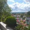 Von dem sehr großen Balkon hat man einen schönen Blick auf die Landschaft .