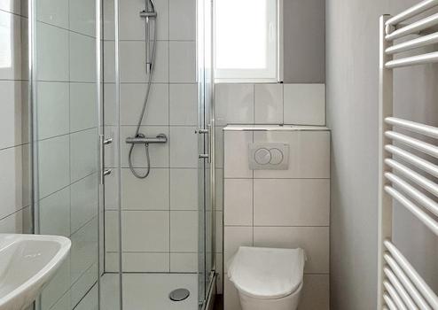 - Raumhoch im Duschbereich, halbhoch im WC-Bereich