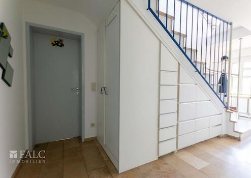 Besonders praktisch: Den derzeitigen Eigentümern ist es gelungen, den vorhandenen Raum optimal zu nutzen. Stauraum wurde clever unter den Dachschrägen integriert, und der Platz unter der Treppe mit großen Schubladen ausgestattet – ideal für Ordnung und Struktur im Alltag.