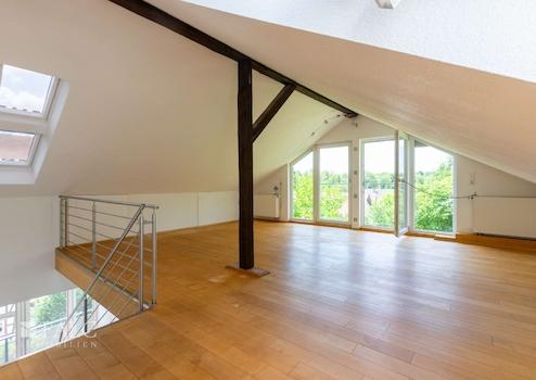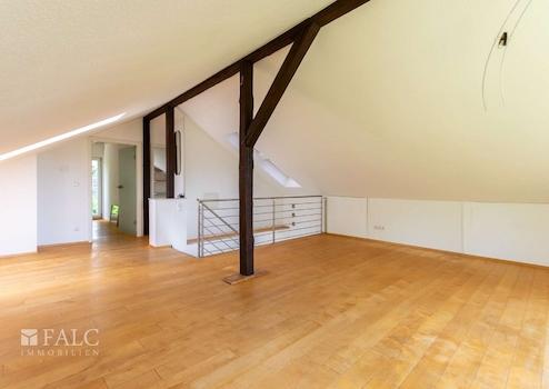 Der Dachgeschossausbau erfolgte im Jahr 2007. Hier erwartet Sie ein großzügiges, offenes Dachstudio sowie zwei weitere Zimmer, die sich flexibel als Kinder-, Gäste- oder Arbeitszimmer nutzen lassen.