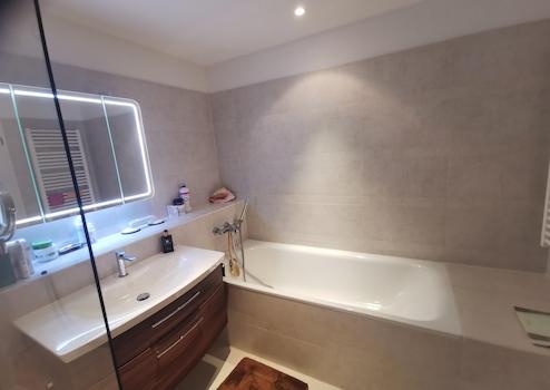 * Modernes Badezimmer mit Duschkabine und Badewanne