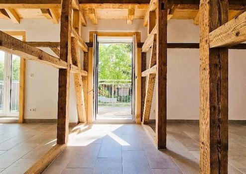 Das Fachwerkhaus, detailverliebt saniert, vereint den Charme vergangener Jahrhunderte mit modernem Wohnkomfort. Mit Lehmbauweise gestaltete Wände sorgen nicht nur für ein außergewöhnliches Raumklima, sondern regulieren auf natürliche Weise die Feuchtigkeit und schaffen eine angenehme, gesunde Wohnatmosphäre.