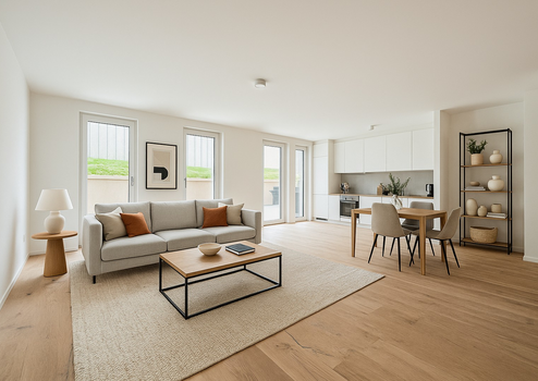 - Glatte, fein verputzte Wände, die den Wohnräumen eine klare und moderne Ausstrahlung verleihen