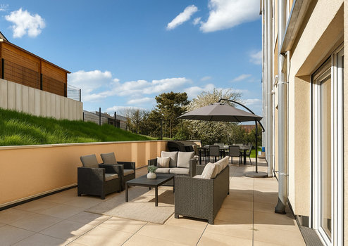 - Private Balkone, Loggien oder Terrassen, die zum Entspannen und Genießen der Umgebung einladen