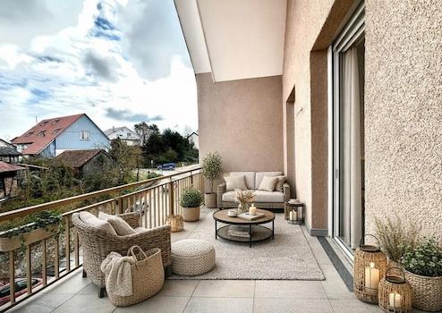 - Private Balkone, Loggien oder Terrassen, die zum Entspannen und Genießen der Umgebung einladen