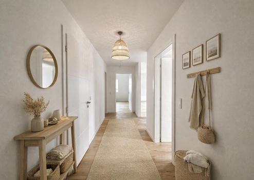- Glatte, fein verputzte Wände, die den Wohnräumen eine klare und moderne Ausstrahlung verleihen