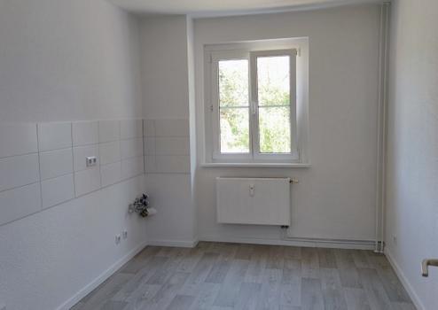 + geräumige Küche mit Fenster, Fliesenspiegel & CV Belag