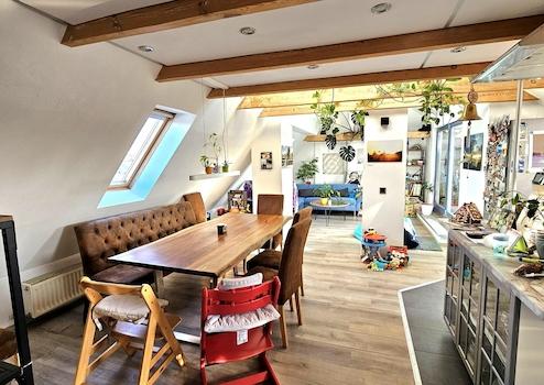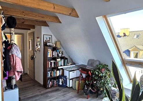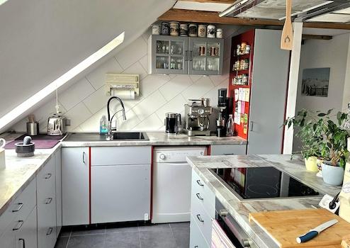 Die lichtdurchflutete und modern geschnittene Dachgeschosswohnung befindet sich in einem gepflegten Mehrfamilienhaus aus dem Jahr 1956 ohne Aufzug. Die Wohnung selbst wurde 1999 ausgebaut. Dabei wurde auf eine sehr gute Dämmung geachtet und es wurden hochwertige Velux Dachflächenfenster verbaut. Die Wohnung nimmt die komplette 4. Etage ein, somit sind Sie im Dachgeschoss die einzigen Bewohner. Durch den großzügigen, offenen Wohn-, Ess- & Kochbereich entsteht ein tolles Raumgefühl. Die Einbauküche beinhaltet eine Kochinsel mit Induktionskochfeld, Backofen und eine Dunstabzugshaube mit Abluft nach draußen.