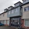 In der Nähe befindet sich ein Edeka-Markt, das Landkreisgebäude mit großen Grünanlagen