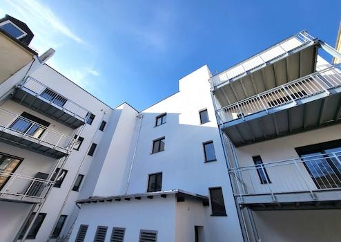 Dieses Anwesen befindet sich in den Endzügen der Fertigstellung und 3 herrliche Wohnungen stehen noch zum Verkauf. Durch die perfekte Innenstadtlage erreicht man die Fußgängerzone von Hof in 2 Gehminuten und kann somit alle Annehmlichkeiten der Stadt optimal nutzen. Die Bushaltestelle ist direkt vor der Tür und angefangen von Einkaufsmöglichkeiten, Sportstätten, Ärzten, Gaststätten usw. befindet sich alles Notwendige in unmittelbarer Nähe. Die Stadt Hof ist mit rund 46.000 Einwohnern eine der größten Städte in Oberfranken. „Hof … in Bayern ganz oben“ - dieser Slogan begleitet Hof schon viele Jahre und zeigt einerseits, dass die Stadt sich ganz im Norden von Bayern befindet und andererseits hoch oben auf ca. 500 Meter Höhe zwischen dem Fichtelgebirge und dem Frankenwald liegt. Die Stadt Hof ist heute Wirtschaftszentrum, beliebte Einkaufsstadt, Hochschulstadt, Kulturstadt mit Theater und großer Veranstaltungshalle sowie bevorzugter Wohnstandort mit vielen Freizeitmöglichkeiten. Das Naherholungsgebiet Untreusee mit Kletterpark, das Hallenbad mit Saunaanlage, das Freibad, die vielen Vereine und Sportverbände, der „schönste Bürgerpark“ Deutschlands, das Eislaufstadion, der Zoo, eine Vielzahl von Fahrrad- und Nordic Walking-Rundwegen, die Saaleauen, die idyllischen Biergärten oder die vielfältigsten Feste und Veranstaltungen – Hof hat viel zu bieten. Die Stadt Hof ist außerdem durch die Autobahnen A 93 ( Hof - Regensburg ), A9 ( Berlin - München ) und A72 ( Plauen - Dresden ) sowie den Flughafen Hof-Plauen und die guten Bahn- und Busverbindungen auch verkehrstechnisch sehr gut angebunden. Das Krankenhaus, renommierte Fachärzte, der gut ausgebaute öffentliche Nahverkehr und die vielfältigen Einkaufsmöglichkeiten und Werksverkäufe runden das positive Erscheinungsbild von Hof entsprechend ab.