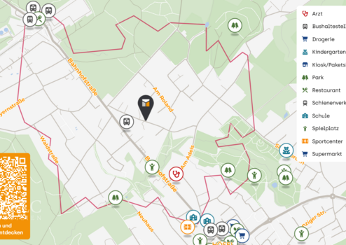 Die Anbindung an den öffentlichen Nahverkehr ist hervorragend. Mehrere Bushaltestellen sowie die Bahnstation Hösel sind bequem zu Fuß erreichbar und ermöglichen eine schnelle Verbindung in Richtung Düsseldorf, Essen und Umgebung. Auch die Autobahn ist in kurzer Fahrzeit erreichbar und sorgt für eine sehr gute regionale und überregionale Mobilität.