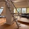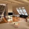 Über eine Wendeltreppe gelangt man in das großzügige, lichtdurchflutete Studio mit offenen Decken bis in den Giebel und sichtbaren Balken. Der Raum beeindruckt durch seine Offenheit und Helligkeit – dank großer Fensterflächen in drei Himmelsrichtungen (Ost, Süd, West). Eine kleine Schlafgalerie im Spitzboden ergänzt die Nutzungsmöglichkeiten. Es gibt auch einen kleinen Abstellraum und eine zweite Eingangstür.