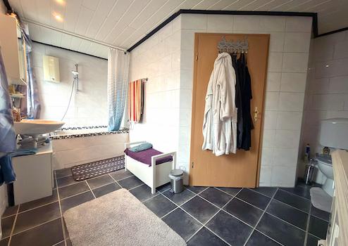 Obergeschoss: Elternschlafzimmer, Kinderzimmer I, Kinderzimmer II (respektive Büro), Flur, Bad (mit Wanne, WC und Waschtisch)