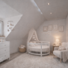 Das Dachgeschoss bietet drei weitere Zimmer, wobei eines als Durchgangszimmer konzipiert ist und sich ideal als Arbeits- oder Ankleidebereich eignet. Eine schöne, erhaltene Holztreppe verbindet die einzelnen Etagen und verleiht dem Haus besonderen Charme.