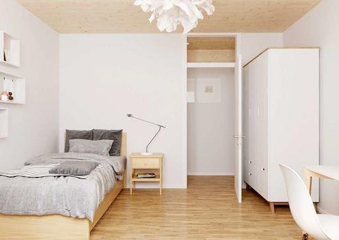 Die 3-Zimmer-Wohnung hat eine Fläche von 61,3 qm, ein Duschbad mit Fenster, einen Abstellraum mit Anschlussmöglichkeit für eine Waschmaschine, eine offene Küche und eine nach Süden ausgerichtete Loggia mit einer Größe von ca. 1,86 x 3,03 m. Zur Wohnung gehört zudem ein Dachbodenabteil mit ca. 5,8 qm.