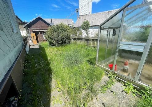 Im angrenzenden kleinen Garten findet sich außerdem noch ein hübsches Gartenhäuschen sowie ein Gewächshaus.