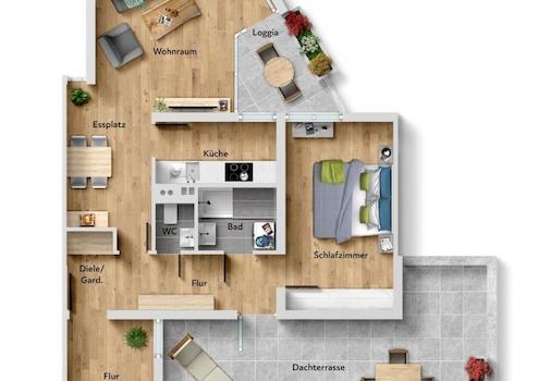 Einmaliger Panoramablick! 2 Zi.-Wohnung mit traumhafter Dachterrasse!