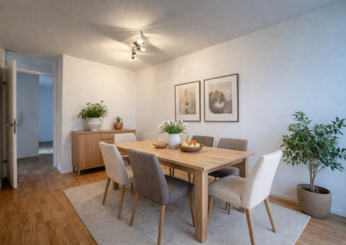 Großzügiger Wohn- und Essbereich mit Zugang zum Balkon