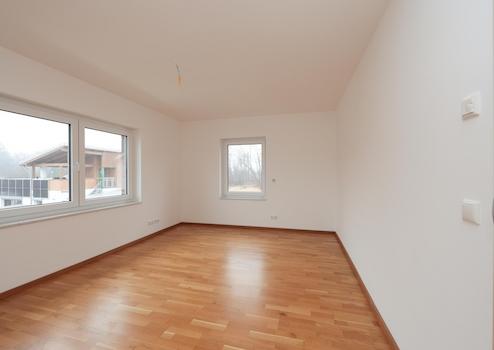 Fenster und Terrassentüren verfügen über Außenjalousien mit Zeitschaltuhr. Die Innentüren sind schwellenlos und 1 m breit für bequemen Durchgang. In das OG gelangt man über die Buchenholztreppe. Mit nachgerüstetem Treppenlift wäre das ganze Haus barrierefrei, zumal es auf ebener Erde zugänglich ist. Das ist vorteilhaft für Kinderwagen und -karren, Einkaufswagen und Koffer. Gegenüber dem Standard wurde das Haus im EG um 10 cm aufgestockt, harmonisch passend zu den großzügigen Wohnflächen. Besucher melden sich über die Video-Sprechanlage an.