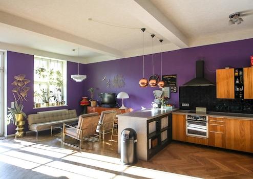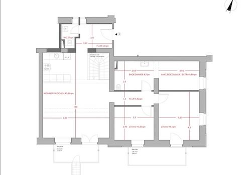 Mittelpunkt der ca. 110qm großen Wohnung ist der großzügige Wohnbereich mit integrierter Kücheninsel. Von hier aus gelangt man über einen Balkon in einen kleinen Garten mit Sondernutzungsrecht. Über eins der zwei weiteren Zimmer gelangt man auf den 2. Balkon.