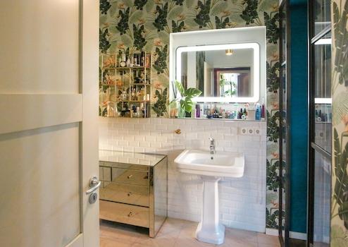Ein Badezimmer sowie ein separates Gäste-WC ergänzen das Raumangebot. Vom Bad aus ist ein 4. Raum zugänglich, der als Ankleidezimmer dient. Ein Stellplatz kann für ca. 30€/Monat angemietet werden.