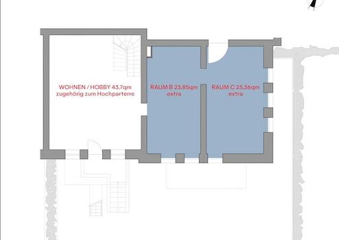 Zusätzlich zum Kaufpreis besteht die Möglichkeit, zwei weitere Räume mit SNR zu erwerben. Diese sind derzeit als Abstellräume definiert und bieten weiteres Potenzial; hierfür ist eine Abstimmung mit dem zuständigen Bauamt erforderlich. Einer dieser beiden Räume (Raum C) verfügt über einen eigenen Eingang zum Kellerflur im Untergeschoss.