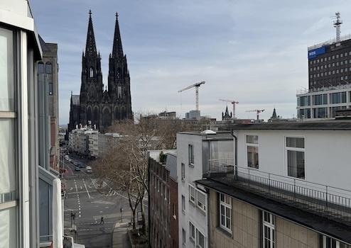 Die Wohnung verfügt zudem über einen einladenden Balkon mit einem atemberaubenden Domblick sowie eine großzügige Terrasse - perfekte Rückzugsorte, um die Seele baumeln zu lassen.