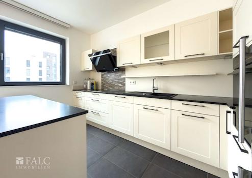 Das großzügig geschnittene Wohn- und Esszimmer bietet reichlich Platz zum Entspannen und zum Bewirten von Gästen. Die offen angeschlossene Küche ist hochwertig ausgestattet und lässt keine Wünsche offen: Siemens-Markengeräte wie Backofen mit Dampfgarerfunktion, Induktionskochfeld, Dunstabzugshaube, Geschirrspüler sowie ein Liebherr-Kühlschrank mit integrierter Eismaschine gehören zur Ausstattung und sind im Preis enthalten. Eine versenkbare, elektrische Brotschneidemaschine rundet das durchdachte Küchenkonzept ab.