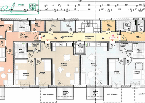 WE 05: erstes Obergeschoss, 3 Zimmer, 78,69m² Wohnfläche, Balkon, Einbauküche. 1062€ Nettokaltmiete zzgl. 236€ Nebenkosten, 40 EUR Autostellplatz, 60 EUR für die neue Einbauküche (insgesamt 1398EUR pro Monat).