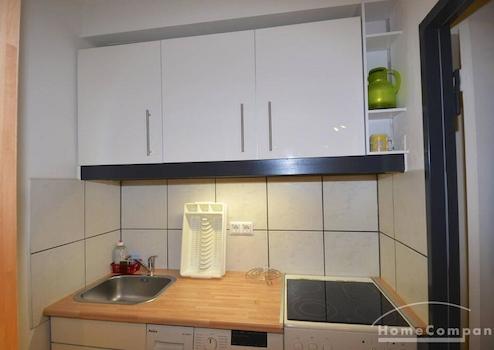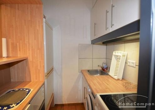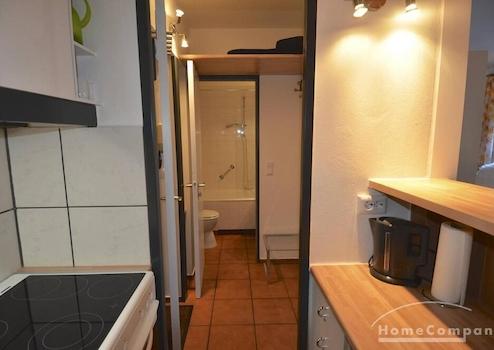Gemütliche, kleine und ruhig gelegene Wohnung in einer Seitenstraße der Steglitzer Bergstraße, komplett möbliert und voll ausgestattet mit allem, was man zum Wohnen und Wohlfühlen braucht. Sehr guter Lichteinfall dank großer Fenster, 3. OG mit Aufzug. Es gibt ein gemütliches Wohn-/Schlazimmer mit Schlafsofa und eine offene, sehr kleine, aber vollwertige Küche mit Herd, Kühlschrank und Waschmaschine. Das moderne Bad hat eine Wanne.