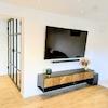 Das OG teilt sich auf in einen großen Elternbereich mit Ankleide, Raumteiler-Schranklösung, ein großes Bad mit exklusiven Details und zwei Kinderzimmern.
