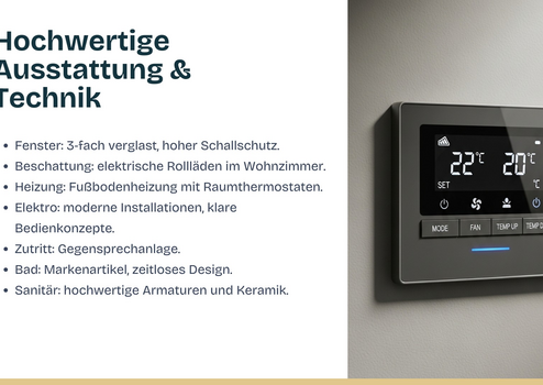 - Fußbodenheizung mit Raumthermostaten für angenehme Wärme