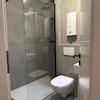 • Schwarze Armaturen und Regendusche im Badezimmer