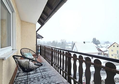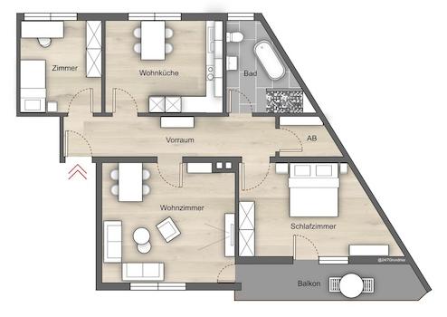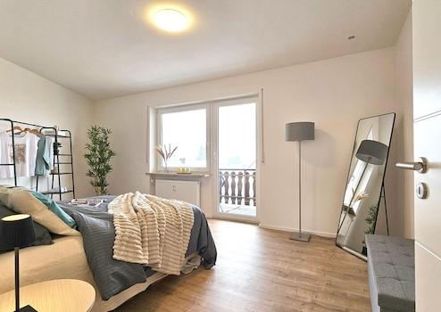 Der helle Wohnbereich bildet das Zentrum der Wohnung und bietet direkten Zugang zum großen Balkon. Auch vom Schlafzimmer aus können Sie den Balkon betreten und sowohl die Sonne als auch den schönen Ausblick genießen. Die geräumige Küche bietet ausreichend Platz zum Kochen und Verweilen. Ein separater Abstellraum sorgt für zusätzlichen Stauraum und unterstützt eine aufgeräumte Wohnatmosphäre.