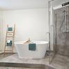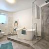 - modernes Badezimmer mit begehbarer Dusche und freistehender Badewanne