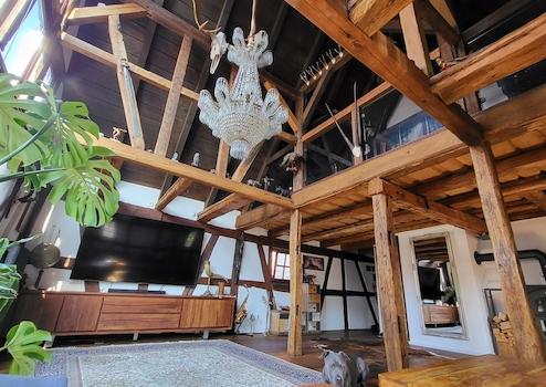 Die ehemalige Scheune besticht durch ihren einzigartigen offenen Baustil der Räume ohne Wände verbindet. Siehe Bilder.