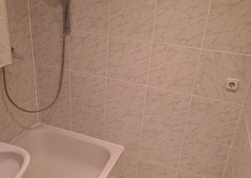 Badezimmer: Bad mit Dusche sowie eigenem Waschmaschinenanschluss und Steckdose.