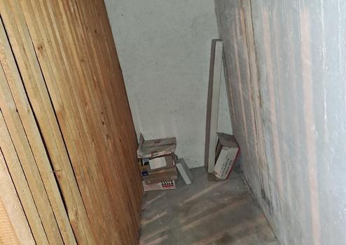 Die Wohnung betritt man durch die Diele mit Fliesenboden, von der aus das Wohnzimmer, das Schlafzimmer und das Badezimmer (raumhoch verfliest, Holzdecke) erreichbar ist.