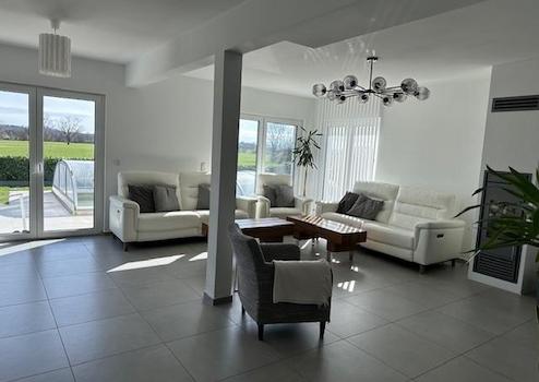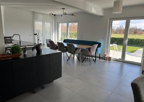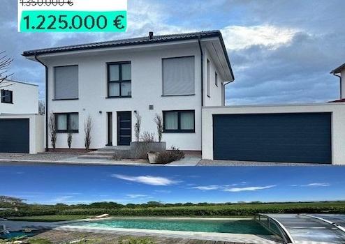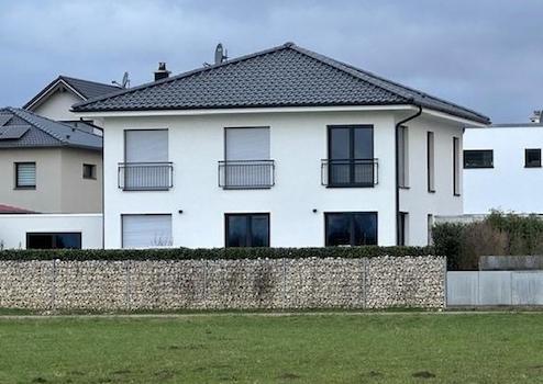 Ein Traumhaus in Traumlage vom Bodenseekreis, eintreten und Wohlfühlen. Zweigeschossige Stadtvilla mit 6 Zimmern, offener Küche. Geräumigem Wohn-/Essbereich, Gäste-WC, Technikraum mit Glasfaseranschluss. Das Energieeffizienzhaus (Holzständerbauweise) hat eine dicke Thermowand von 34,5cm und eine Wärmedurchgangskoeffizienten von U = 0,12 W/(m2K). Ausgezeichnete Wärmedämmung im Winter, Perfekter Hitzeschutz im Sommer und schafft somit ein behagliches Wohnklima. Innovativ, natürlich und effizient. Modernste Gas Zentralheizung mit Fußbodenheizung und Zentrale Lüftungsanlage mit Wärmerückgewinnung (kontrollierte Be- und Entlüftungsanlage). Leerrohr vom Spitzboden zum HWR vorhanden. Elektrische Fensterläden im gesamten Haus. Kamin vom Schiedel, Kamin im Schornstein mit 7,4 KW. Das große Schlafzimmer hat eigenes Bad mit begehbarer Garderobe (Ankleideraum). HomeWay-Multivision Steckdosen in allen Räumen vorhanden. Der Garten lädt zum Erholen mit einer freien unverbaubaren Sicht in die Natur, Landschaftsflächen und Wiesen mit Alpen Blick. Außenpool mit Außendusche und Poolüberdachung, Pool wird mit Automatische Salzelektrolyse betrieben (sehr Pflegeleicht). Eine Großraumgarage von Pfaff 6 Meter auf 9 Meter rechts vom Haus und eine Sonderanfertigung Pfaff Garage links vom Haus zur Grenze eine Breite 3,67 Meter. Rasenbewässerung mit Versenkbare Rasensprenger im Boden (mit App Smart-Steuerung).