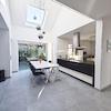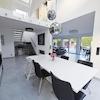 Offener Wohn-, Ess- und Kochbereich mit fließenden Übergängen