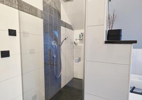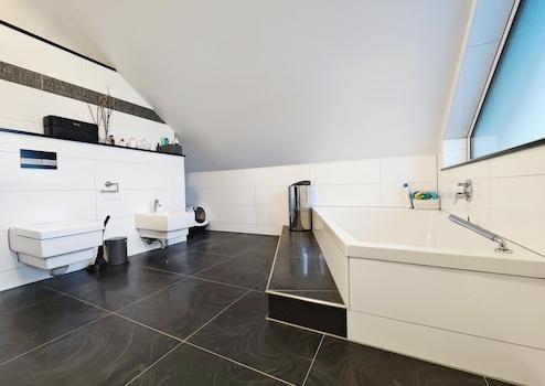 Modernes Bad mit Badewanne und begehbarer Dusche
