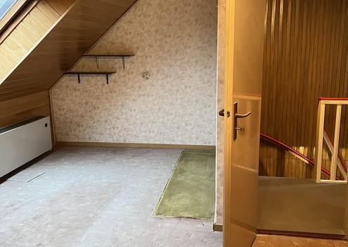 Die Treppe führt weiter in den ausgebauten Dachbodenbereich. Hier befindet sich ein weiteres Schlafzimmer und ein Abstellraum.