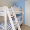 Das Haus ist durchgehend mit modernen hellen Fliesen im Format 60 x 60 ausgestattet. Die Möbel und das Haus sind passend zum Meeresambiente weiß und blau gehalten, die Wände mit Flies Tapete maritim interpretiert.