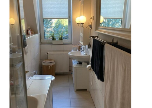 Saniertes, modernes Badezimmer mit Tageslicht