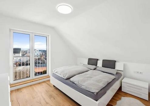Auf großzügigen ca. 159 m² Wohnfläche erwarten Sie ein lichtdurchfluteter Wohn-/Essbereich mit offener Küche, sechs Zimmer + Ankleide, zwei exklusive Bäder sowie eine beeindruckende ca. 50 m² große Sonnenterrasse mit Weitblick über Kahl am Main.