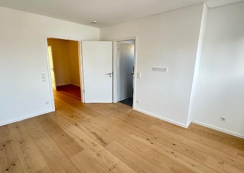 Bereits beim Betreten empfängt Sie ein großzügiger, lichtdurchfluteter Eingangsbereich mit Flur, von dem aus sich alle Räume erschließen. Links befindet sich ein komfortables Gäste-WC mit Dusche. Angrenzend liegt der private Masterbereich, bestehend aus einem Ankleidezimmer, dem Schlafzimmer mit elegantem Bad en Suite sowie direktem Zugang zur Dachterrasse ein Rückzugsort, der Privatsphäre und Komfort vereint.