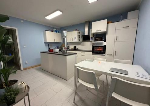 Wir haben hier eine renovierte 9-Zimmer Wohnungen mit großer gemeinschaftlicher Küche, viel Platz und allem was Ihr braucht.